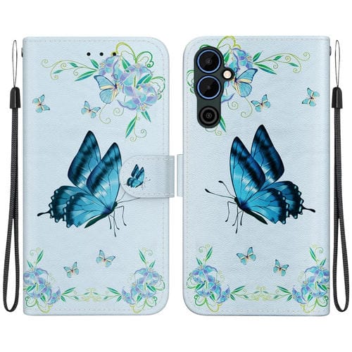 Funda de Cuero para Tecno Pova Neo 2 con Dibujo Coloreado y Textura de Cristal (Azul)