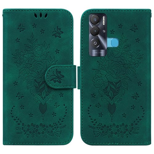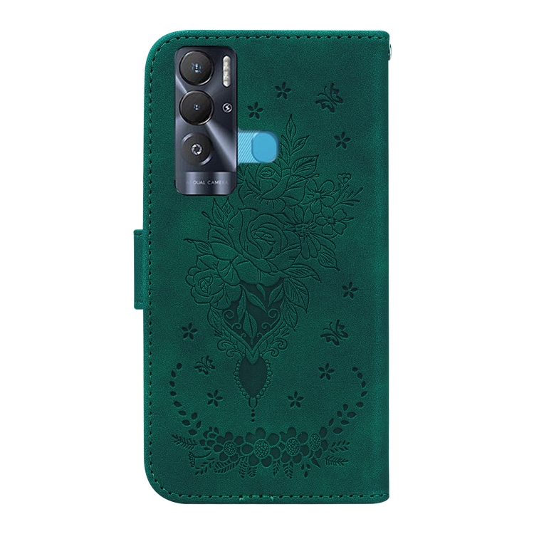 Funda para Tecno Pova Neo Butterfly Rose Foothip en Relieve de Cuero (Verde)