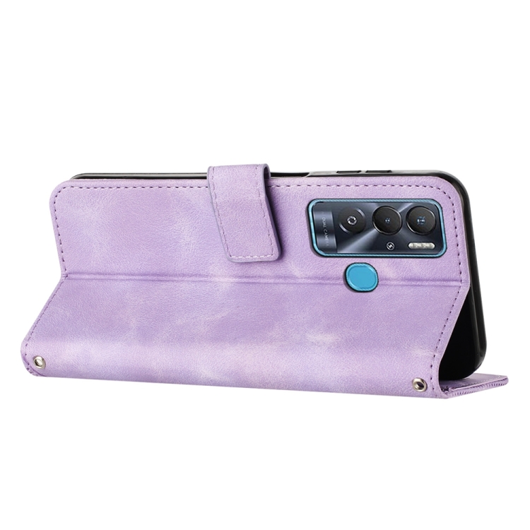 Funda de Cuero para Tecno Pova Neo Dream Triangle con Cordón (Púrpura)