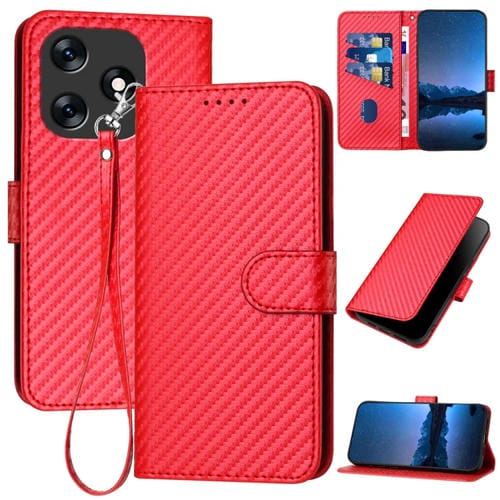 Funda de Cuero para Tecno Spark 10 4G Yx0070 con Hebilla de Fibra de Carbono y Cordón (Rojo)