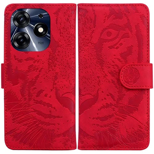 Funda Flip de Cuero para Tecno Spark 10 Pro con Patrón Tiger Embossing (Rojo)