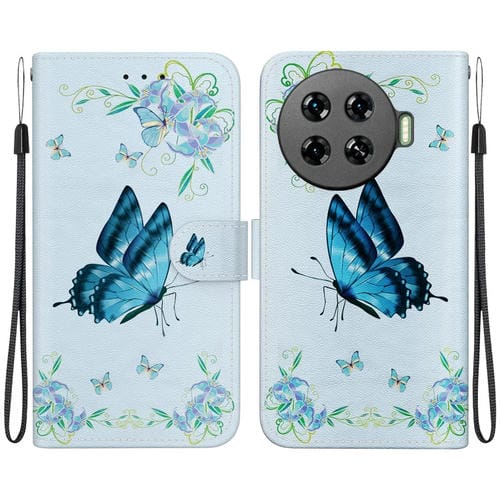 Funda de Cuero para Tecno Spark 20 Pro + 4G con Dibujo Coloreado y Textura de Cristal (Azul)