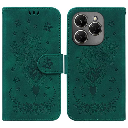 - 1x Funda de Cuero para Tecno Spark 20 Pro Butterfly Rose en Relieve (Verde)