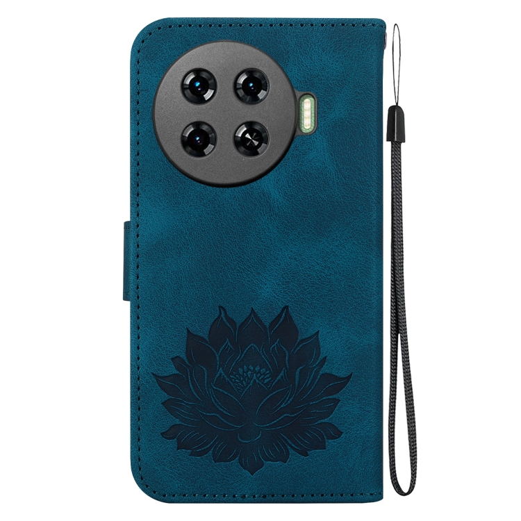 Funda de Cuero para Tecno Spark 20 Pro+ con Relieve de Loto (Azul Oscuro)