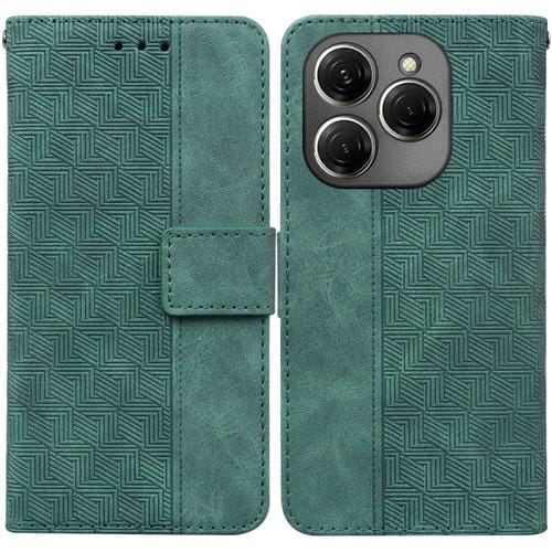 Funda de Cuero para Tecno Spark 20 Pro con Relieve Geométrico (Verde)