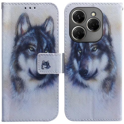 Funda de Cuero con Tapa para Tecno Spark 20 Pro con Dibujo Lobo Blanco