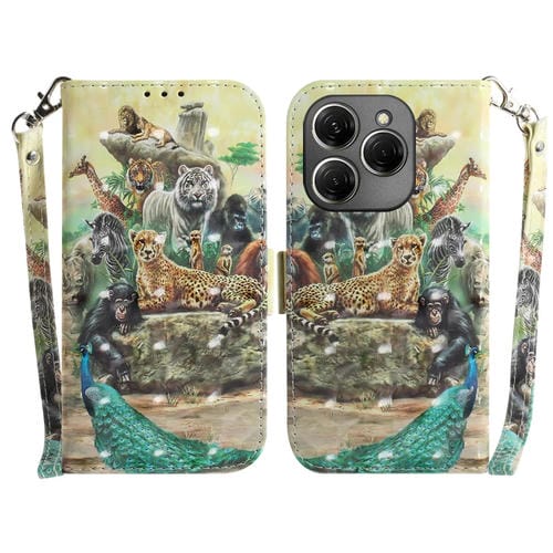 Funda de Cuero para Tecno Spark 20 Pro con Tapa Horizontal y Diseño 3D (Zoo)