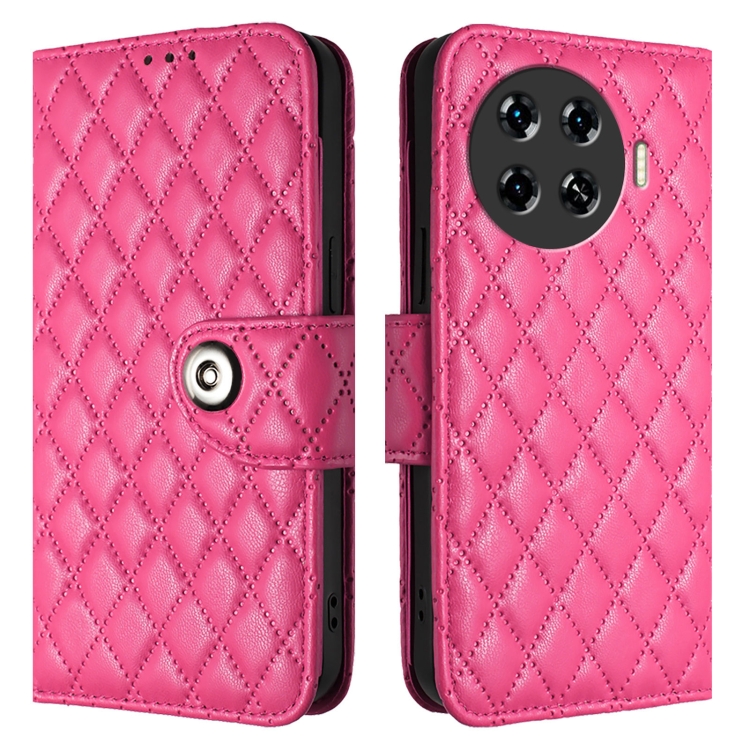 Funda de Cuero con Tapa y Cordón para Tecno Spark 20 Pro (Rojo Rosa)