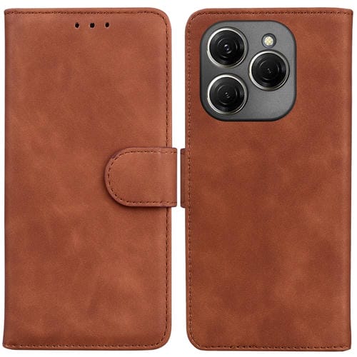 Funda de Cuero con Tapa para Tecno Spark 20 Pro Skin Feel Pure Color (Marrón)