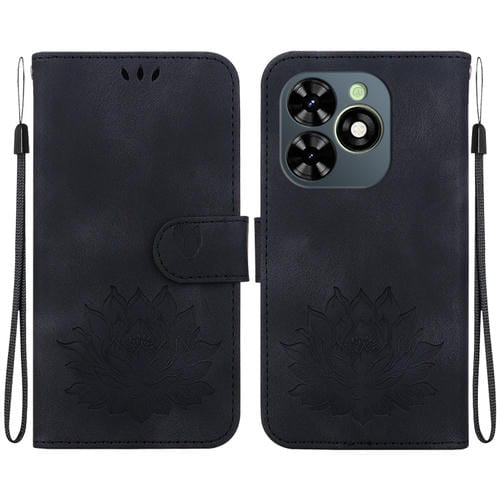 Funda de Cuero para Tecno Spark 20C / Pop 8 con Relieve de Loto (Negro)