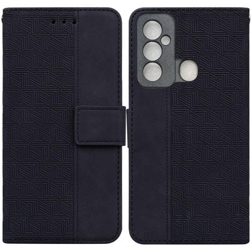 Funda de Cuero para Tecno Spark 6 Go con Relieve Geométrico (Negro)