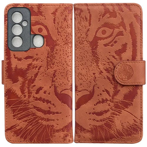 Funda de Cuero para Tecno Spark 6 Go con Tapa Horizontal y Patrón Tiger Embossing (Marrón)