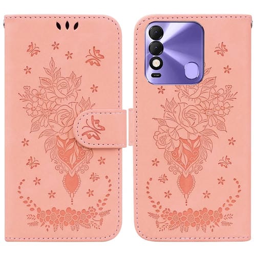 Funda de piel para Tecno Spark 8 y Spark 8T con diseño Butterfly Rose (Rosa)