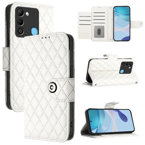 Funda de Cuero para Tecno Spark 9 con Tapa Textura Rombal y Cordón (Blanco)