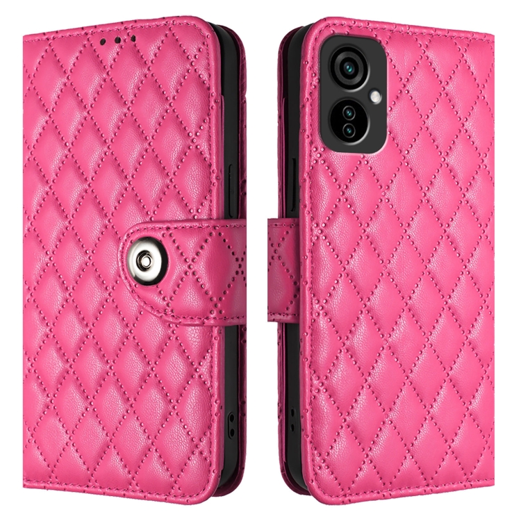 Funda para Tecno Spark 9 Pro y Spark 9T con Tapa de Cuero, Textura Romboidal y Cordón (Rojo Rosa)