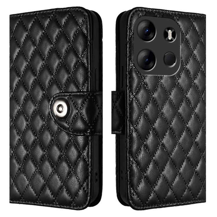 Funda para Tecno Spark Go 2023 con Tapa de Cuero Textura Rómbica y Cordón (Negro)