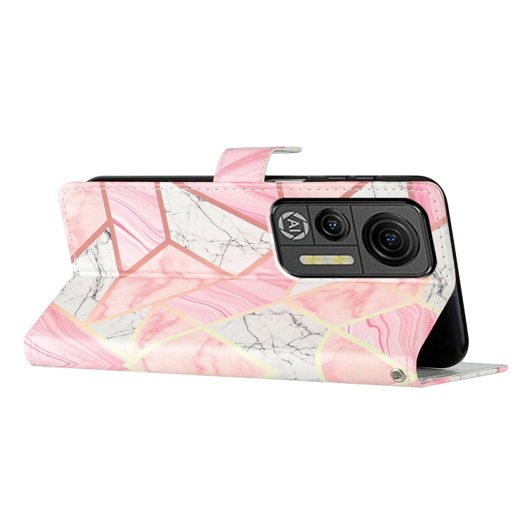 Funda de Cuero para Ulefone Note 14 con Dibujo Coloreado Mármol (Rosa)