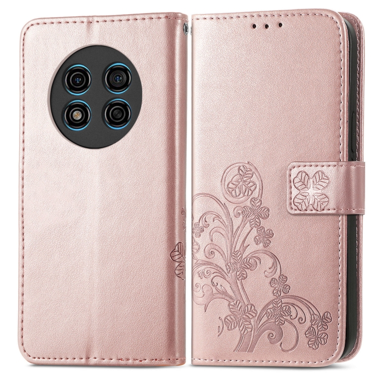 Funda de Cuero para Ulefone Note 15 con Hebilla en Relieve y Cierre de Cuatro Hojas (Oro Rosa)