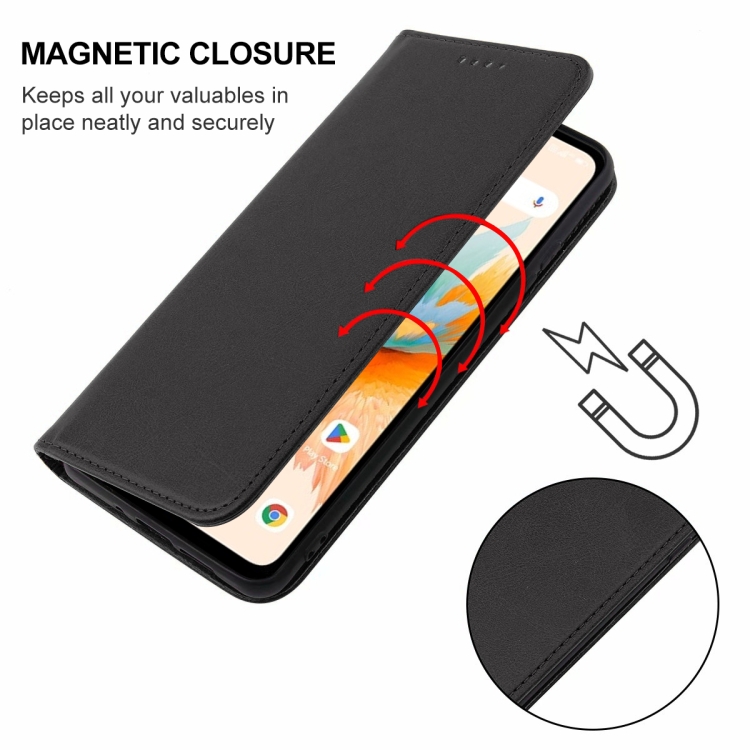 Funda de Cuero para Teléfono Umidigi A15 / A15C con Cierre Magnético (Negro)
