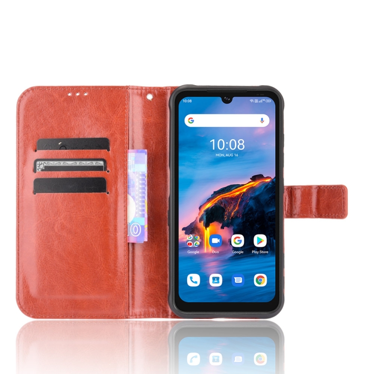 Funda de Cuero para Umidigi Bison Pro Crazy Horse Textura Horizontal con Soporte y Ranuras para Tarjetas (Marrón)