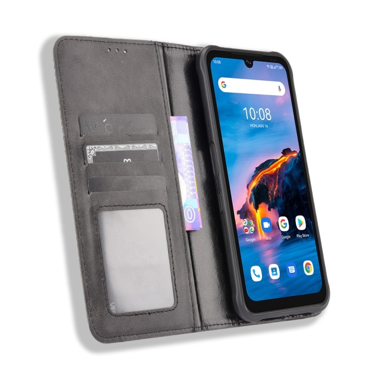 Funda de Cuero para Umidigi Bison Pro con Hebilla Magnética, Soporte y Ranura para Tarjeta (Negro)