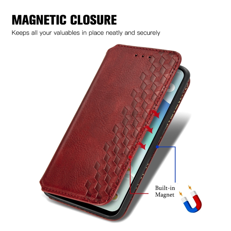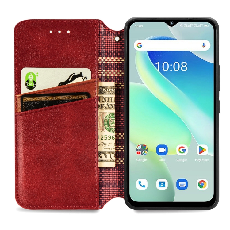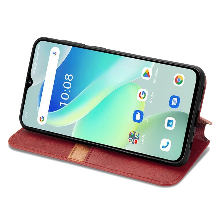 Funda de Cuero Magnético para Umidigi G5 Cubic Grid (Rojo)