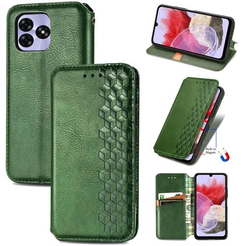Funda para Umidigi G5 Cubic Grid de Cuero Magnético Prensado (Verde)
