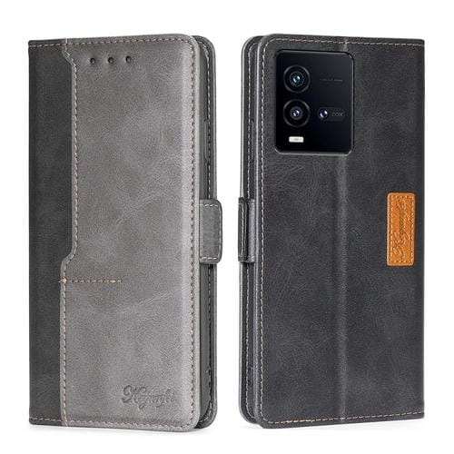 Para Vivo Iqoo 10 Caja de Teléfono de Cuero con Hebilla Lateral de Color de Contraste (Negro + Gris)