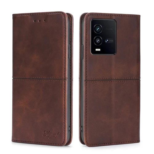 Para Vivo Iqoo 10 Funda de Teléfono de Cuero Magnético con Textura de Vaca (Marrón Oscuro)
