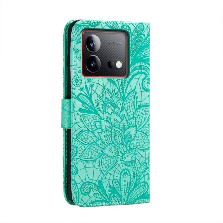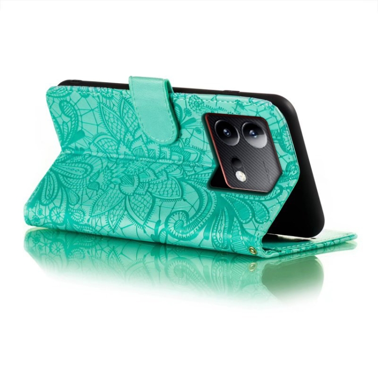 Para Vivo Iqoo Neo8 Funda para Teléfono de Cuero con Tapa y Estampado de Flores de Encaje (Verde)