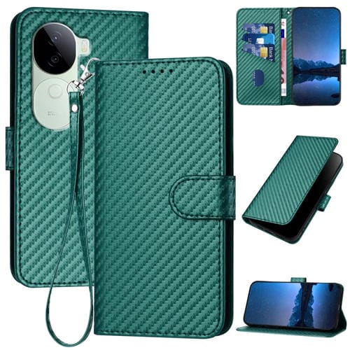 Funda de Cuero con Hebilla de Fibra de Carbono y Cordón para Vivo Iqoo Z9S/V40E (India Yx0070) (Verde Oscuro)