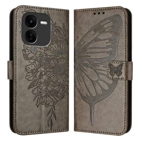 Para Vivo Iqoo Z9X Funda de Cuero con Mariposa En Relieve (Gris)