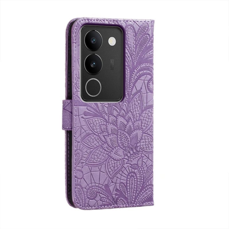 Para Vivo S17 Funda de Cuero con Tapa y Estampado de Flores de Encaje (Púrpura)