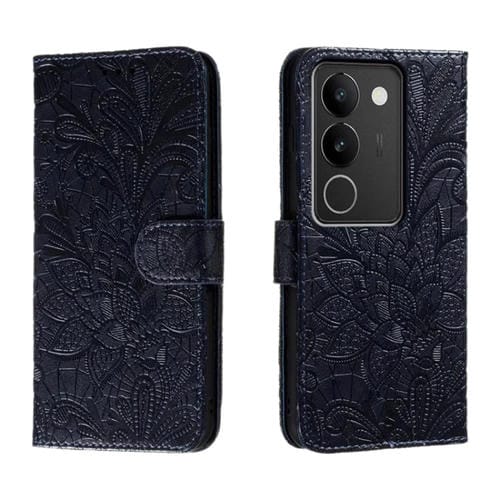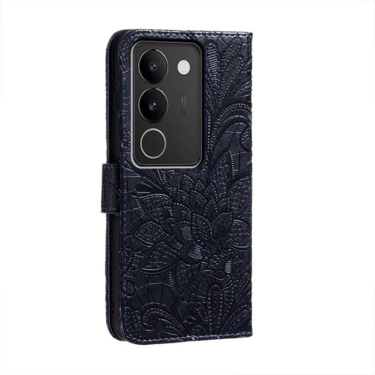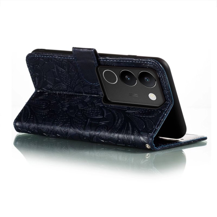Para Vivo S17 Funda para Teléfono de Cuero con Tapa y Estampado de Flores de Encaje (Azul Oscuro)