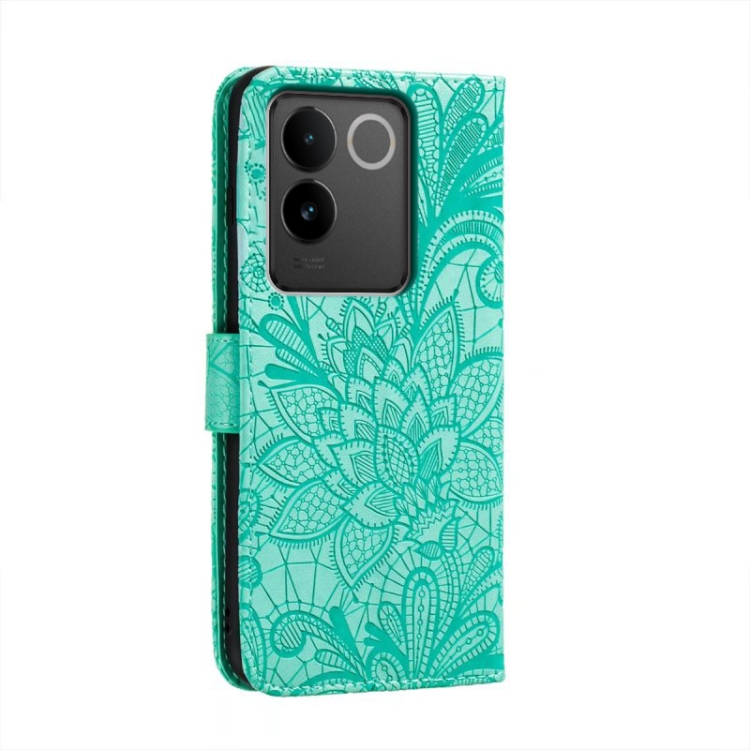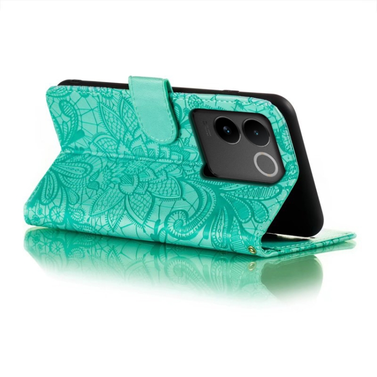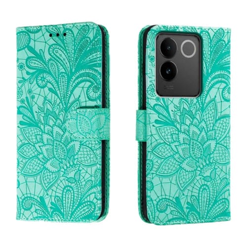 Para Vivo S17E Funda para Teléfono de Cuero con Tapa y Estampado de Flores de Encaje (Verde)