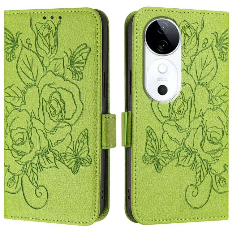 Para Vivo S19 Estuche para Teléfono de Cuero Antirrobo Rfid con Rosa En Relieve (Verde)