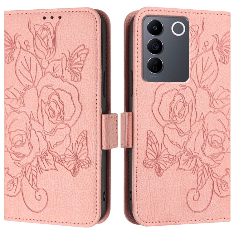 Para Vivo V27E 4G / T2 4G Funda para Teléfono de Cuero Antirrobo Rfid con Relieve Global (Rosa)