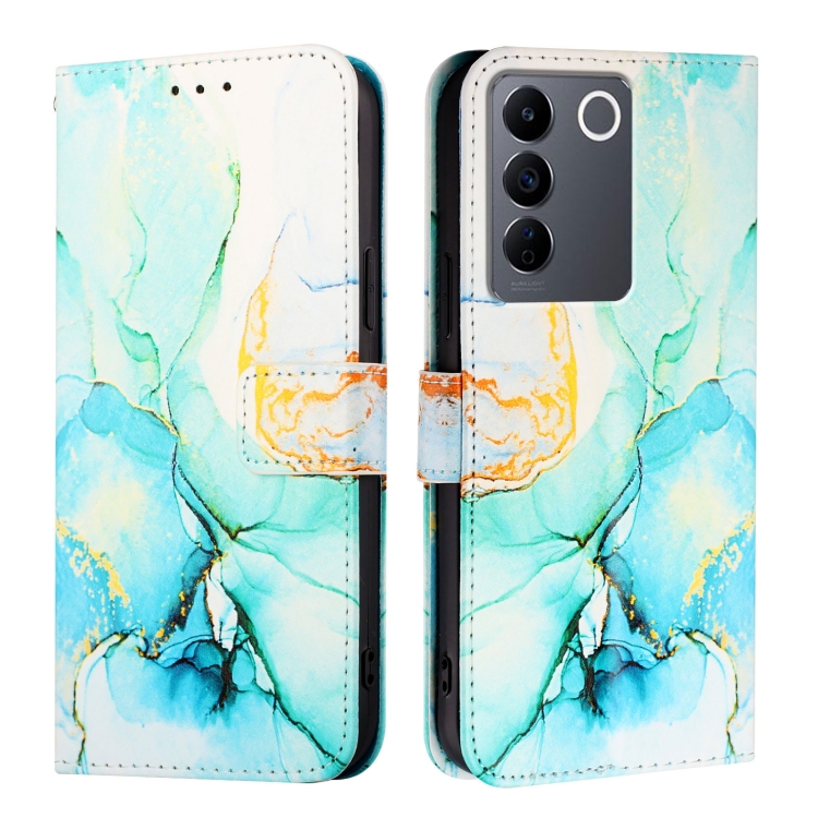 Para Vivo V27E 4G / T2 4G Global Pt003 Funda de Cuero con Tapa con Patrón de Mármol (Verde)