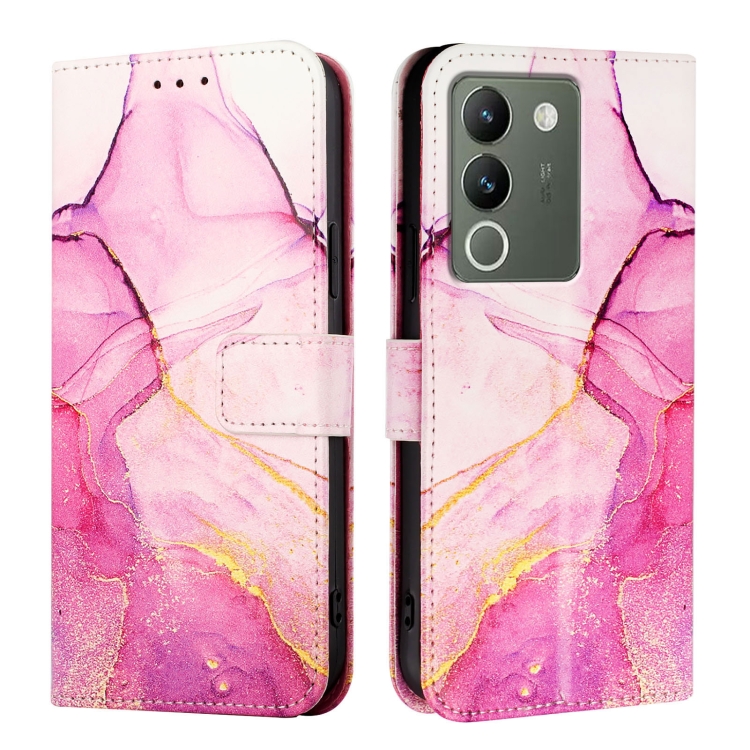 Para Vivo V29E 5G Global / Y200 5G Global Pt003 Funda para Teléfono de Cuero con Tapa con Patrón de Mármol (Rosa, Morado y Dorado)
