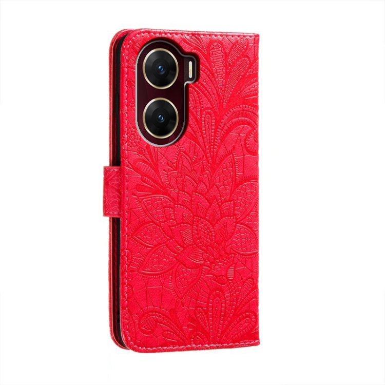 Para Vivo V29E Funda para Teléfono de Cuero con Tapa y Estampado de Flores de Encaje (Rojo)