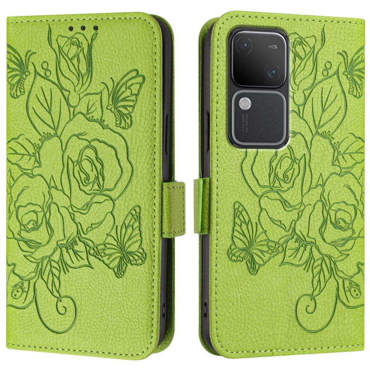 Para Vivo V30 5G / V30 Pro 5G Funda para Teléfono de Cuero Antirrobo Rfid con Relieve Global (Verde)