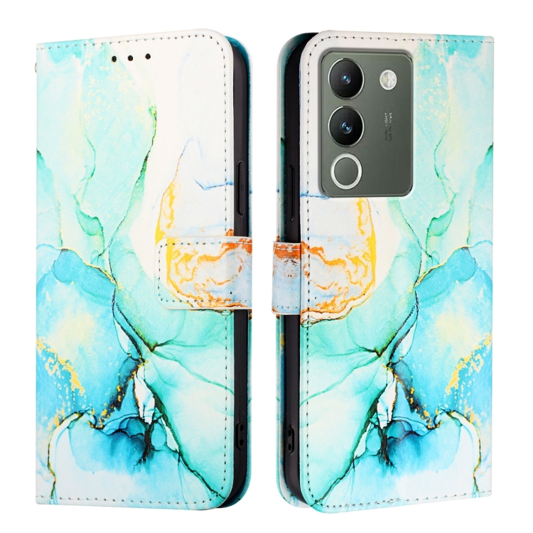 Para Vivo V30 Lite 5G Global Pt003 Funda para Teléfono de Cuero con Tapa con Patrón de Mármol (Verde)