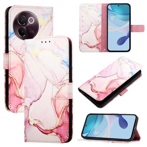 Para Vivo V30E 5G Global Pt003 Funda para Teléfono de Cuero con Tapa con Patrón de Mármol (Oro Rosa)
