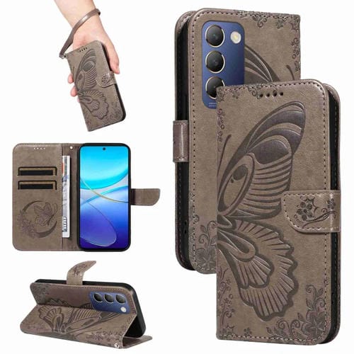Para Vivo V40 Se 5G / Y100 Idn / Y200E Funda para Teléfono de Cuero con Relieve de Mariposa de Cola de Golondrina (Gris)