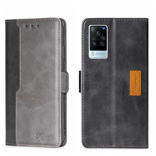 Para Vivo X60 Pro Global/X60 Curvado Contrast Color Color Bebel Funto de Cuero (Negro + Gris)