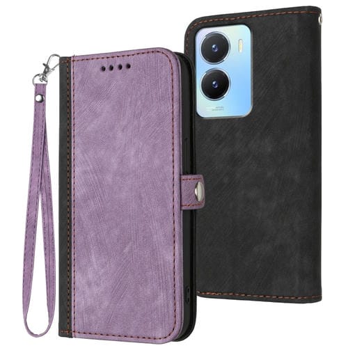 Para Vivo Y02S 4G Global Hebilla Lateral Doble Pliegue Correa de Mano Funda de Cuero para Teléfono (Púrpura)