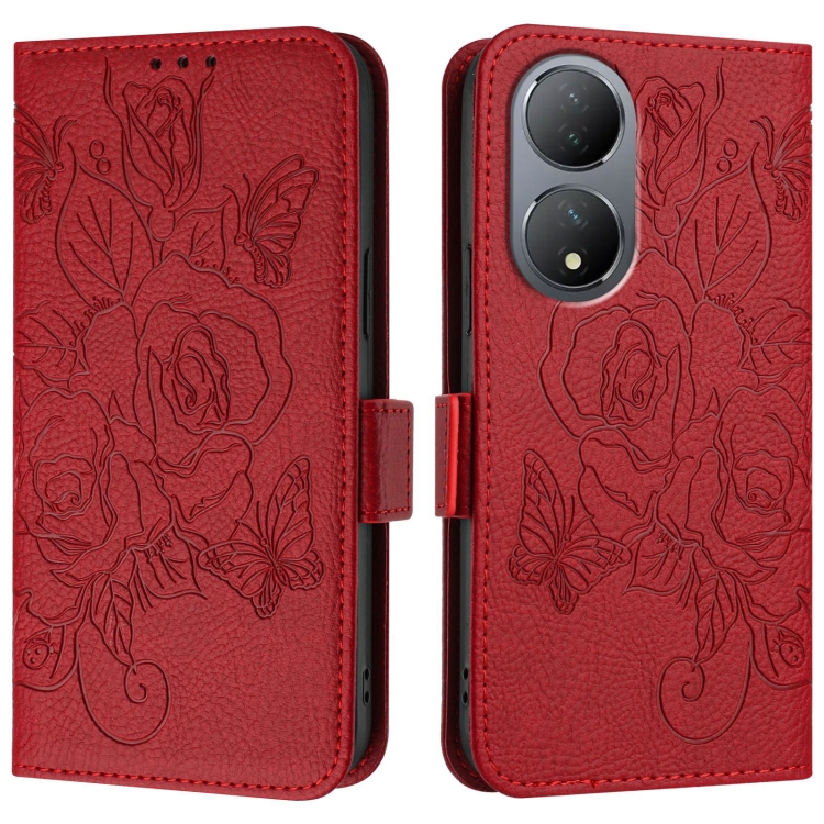 Para Vivo Y100 5G Global Embossed Rose Rfid Funda de Cuero Antirrobo para Teléfono (Rojo)
