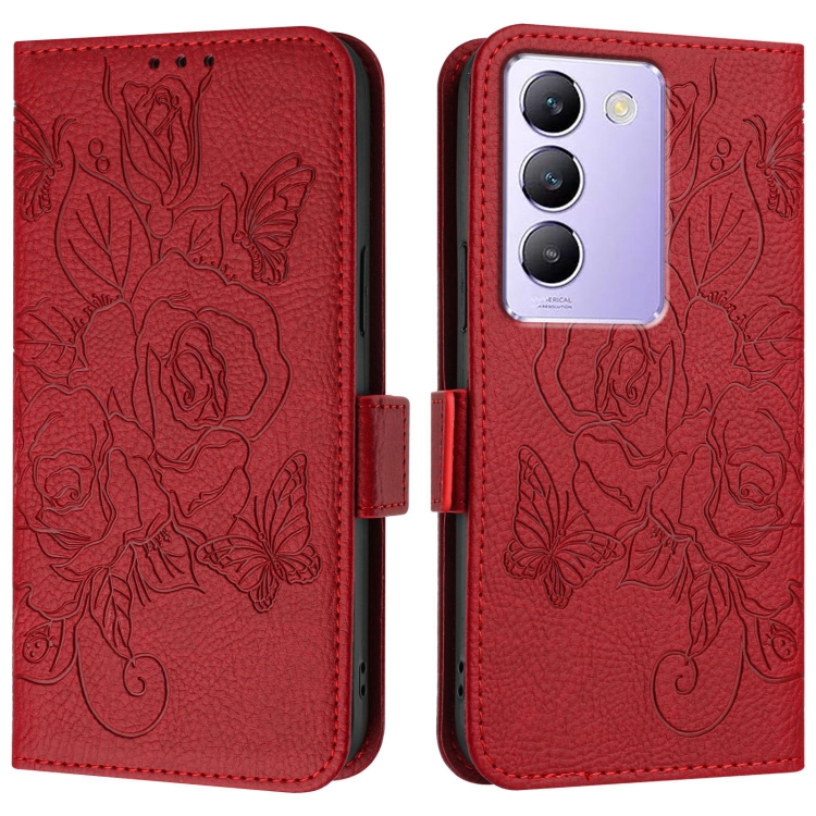 Para Vivo Y100 5G / T3 5G Idn Funda para Teléfono de Cuero Antirrobo Rfid con Rosa En Relieve (Rojo)