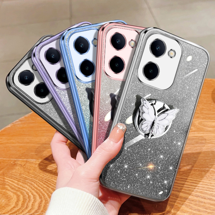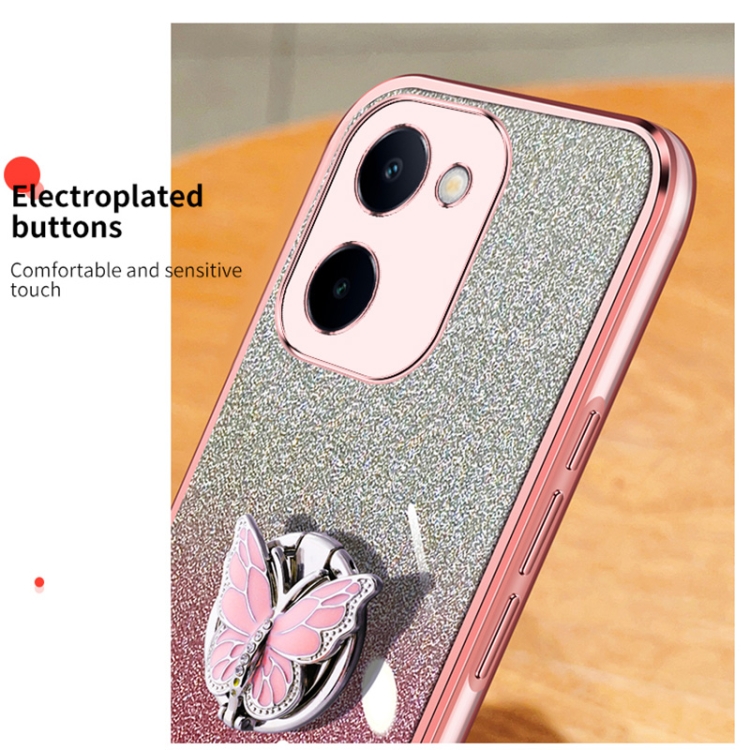 Para Vivo Y100I Estuche para Teléfono de TPU con Soporte de Mariposa con Brillo Degradado Plateado (Azul Sierra)