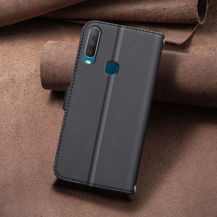 Para Vivo Y11 / Y15 / Y12 / Y17 Funda de Cuero para Teléfono con Textura Cuadrada (Negro)